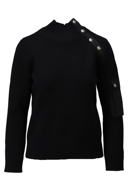 K-DESIGN B841/ BLACK TRUI MET KRAAG & KNOPEN