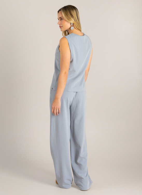 OverzichtEen klassiek gilet met een moderne uitstraling. Het fijne streepje en de hoge sluiting geven dit model een krachtige look. Draag het solo of als set met de bijpassende pantalon voor een stijlvolle combinatie.